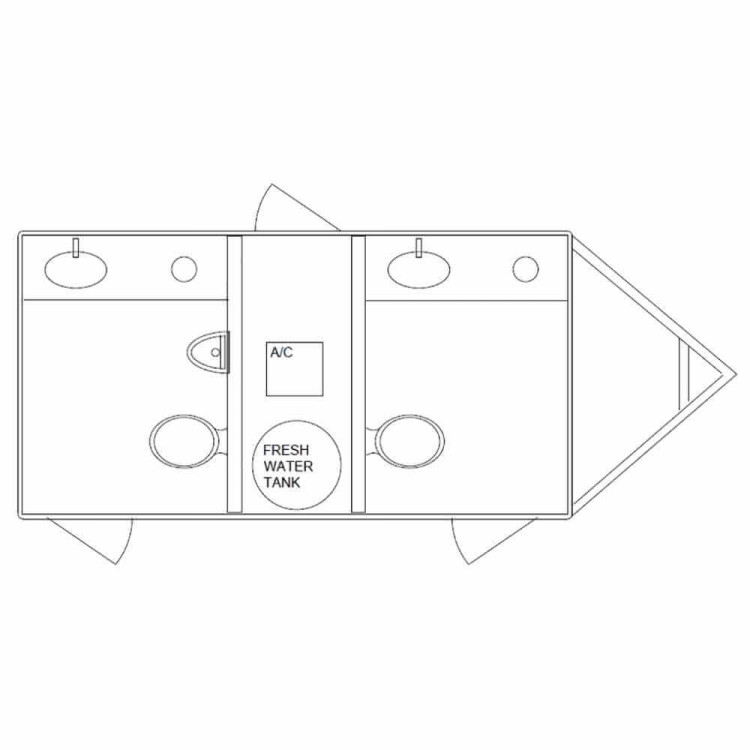Two private, fully enclosed restroom stalls in a single trailer make this 2-station restroom trailer an ideal solution for small events, job sites, or backyard gatherings where a clean, comfortable bathroom option is needed. Each stall offers a lockable door for privacy, a flushing toilet, and a sink with running water for handwashing. The compact, towable unit provides a more dignified and convenient experience than standard portable toilets while remaining easy to place and service. Perfect for weddings, outdoor parties, film shoots, or crew facilities, this restroom trailer combines practicality and comfort in a small footprint.